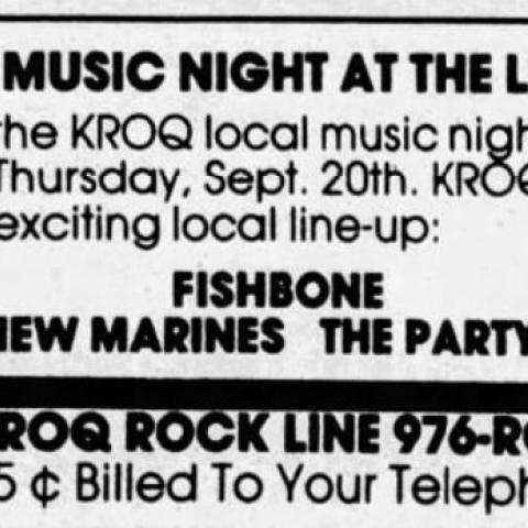 Not sure if the RHCP headlined. Ad for the show has Fishbone headlining with support from New Marines and The Party Boys