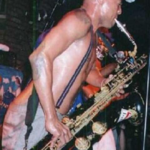 The band started with a couple of Dirty Walt's solo songs, "Rolling in Many Blunt Ways" and "Nuttmeg World". The grooves were well-anchored by the strong, stanky bass of Norwood Fisher and the guitar antics of the insane Spacey T were electrifying!!!! Angelo Moore and Norwood provided backing vocals. Angelo provided percussion (a la bongo) and hi-frequency soundwaves to disturb one's brainwaves (by way of the theremin)!!! John Steward's drumming was as lethal as a fat woman named Cholly falling onto Angelo, after a crowd-surfing mishap!!