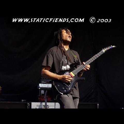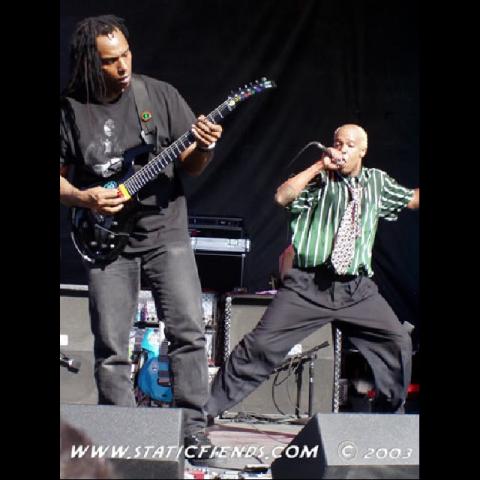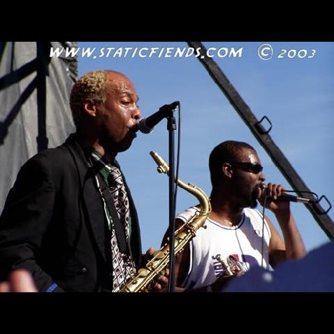 Mixing politics with a reggae beat, Ska music's origins date back over two decades and Fishbone stays true to the roots. Angelo Moore, lead singer, sax and theramin player, introduces a song: "I'm not gonna curse. They told me 'there's too much cursin' going on here today. If you curse, you don't get paid.' So, I'm not going to curse... This song is dedicated to George W. Bush... It's called, Lying Ass Bitch." A song or two does not pass without a word about the state of our world. Fishbone tells us there are other things beyond this sweet, skankin' music with steep rythem and engaging horn solos. There's life. Dance for now, in the complicated rhythms and progressions most bands on the Summit could never dream of duplicating, but remember there is a real world out there. Politics and art, rattling through the minds of thousands, their heads dancing and swaying away. In Vegas? Who would have thought?