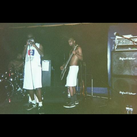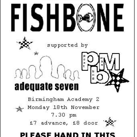 Support was Peat Bog Man (I think) or walked on stage looking very self conscious and young - and this was proved by their last song which was about their physic's teacher. The line up was guitar/vocals, bass drums, trumpet & trombone, they were OK. Then it was adequate 7 or were also at Nottingham. I had a chat with the singer and bought their CD which is on now.