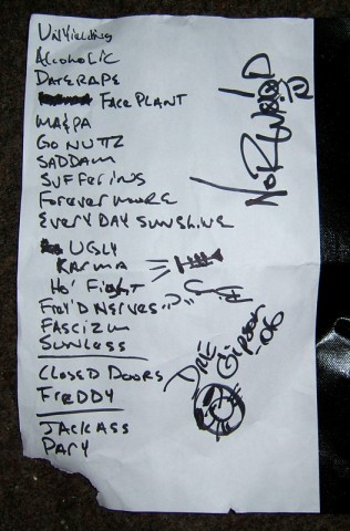 Set List (as written out)