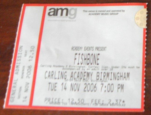 I arrived at the venue about 7.30 with the doors having opened at 7pm ? I was behind a group of people who seemed to have no idea who Fishbone was! When I walked in to the room there was only about 10 people and they were all pretty much smashed out of their minds! They start drinking early in Birmingham. This didn?t bode well although they seemed a friendly bunch especially the young (20?s) lad who thought I was amazing to have seen Fishbone so many times (he asked me about three times if I had seen them!). Angelo turned up and was immediately swamped by the drunks - but whereas I would have made a fast exit he stayed and chatted, signed autographs (I got my ticket signed) and tried to sell his latest comic books and DVD.