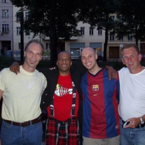 Finaly i met my Idols . Angelo and Norwood want to have a picture of my fishbone Tatoo . Now you have this pic in the Knaak concert Berlin . Angelo never saw a Tatoo like that in his Life .