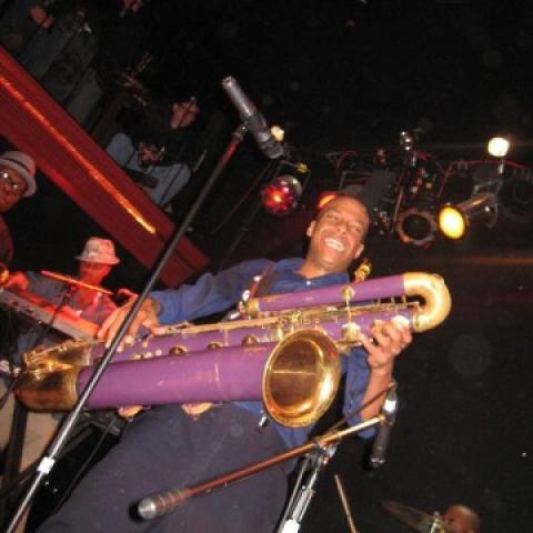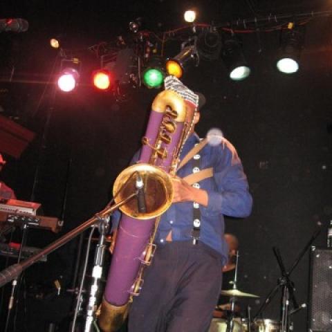 Lavish Green is a four piece funky dub punk band with the singer playing trumpet. Pretty enjoyable. The lead singer would do the guitar strumming the trumpet, and pretend to hit the cymbals with said trumpet. I dunno, not my thing.